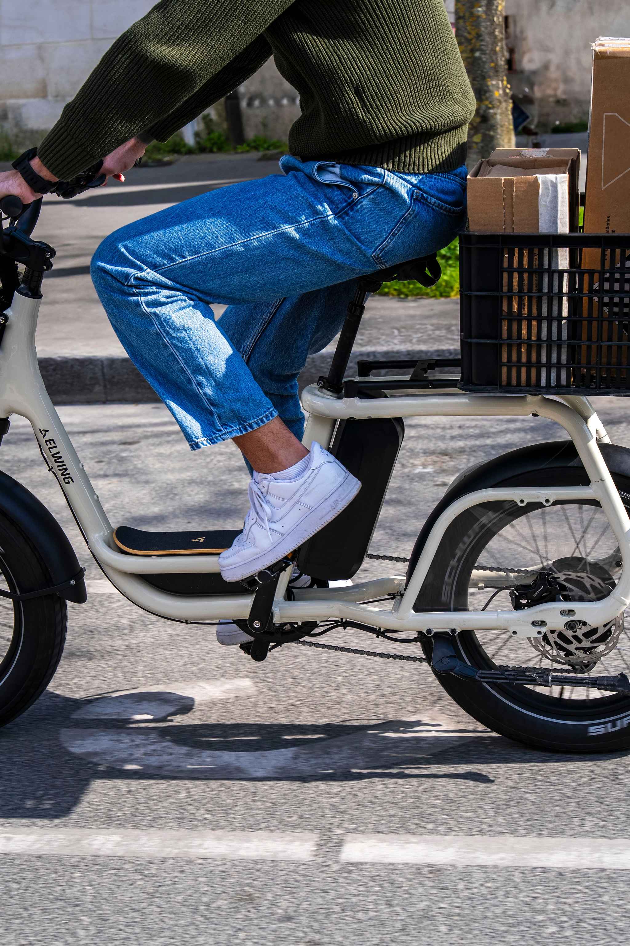 Sa polyvalence est un vrai atout : il est parfaitement adapté à une utilisation solo, tout en offrant la possibilité d’ajouter un siège enfant ou un porte-bagages pour les courses ou le transport occasionnel. Il se faufile partout, que ce soit en ville, sur les pistes cyclables.